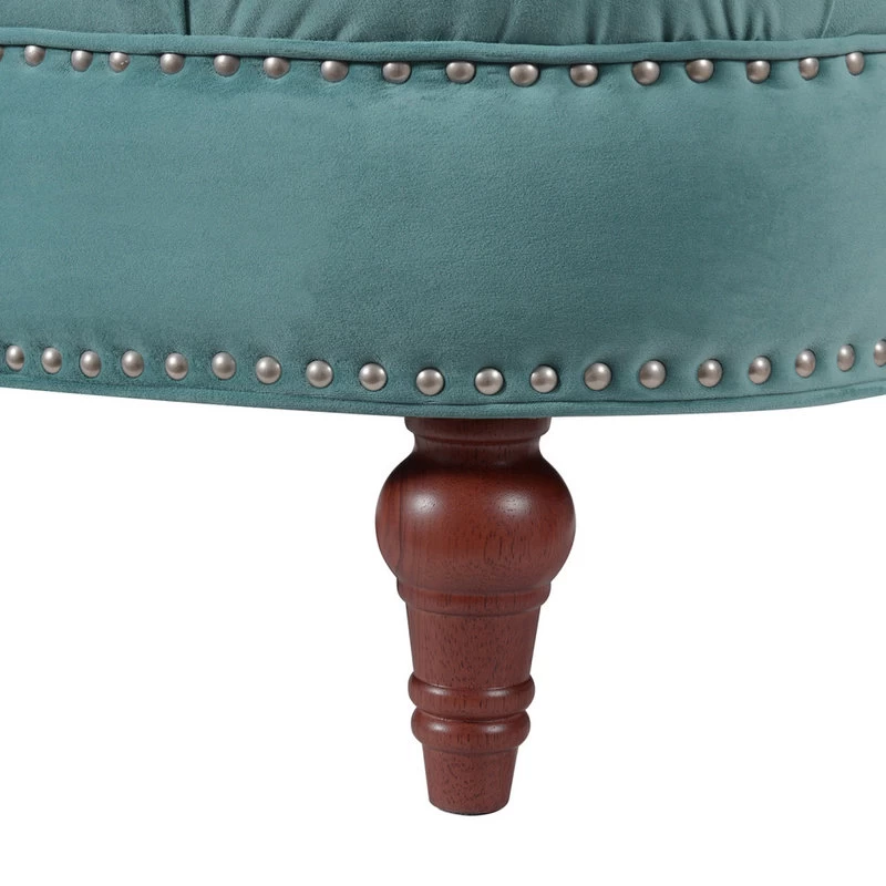 - Hand-applied iron nailhead accents with a satin silver finish