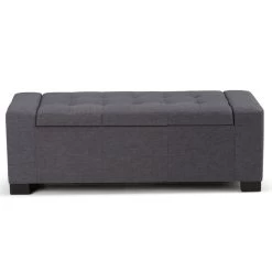 Clutter getting you down. The Laredo Rectangular Storage Ottoman is stylish solution that answers all of your storage needs. It features a beautiful tufted look with a lift up lid and large interior storage space. It also has side bars upon which you can put your morning cup of coffee. The unit is made from durable fabrics and is extra strong and sturdy. Whether you use this ottoman in your entryway, living room, family room, basement or bedroom, it will allow you to hide away all that mess.