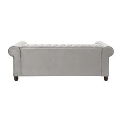 The iconic style of the Welwyn Collection exemplifies the timeless look of traditional design. This Chesterfield-style sofa is covered in gray velvet and features the classic accenting of button tufting, heavily rolled arms and nailhead accent. Cherry finished wood legs provide support while complementing the velvet’s neutral tone.