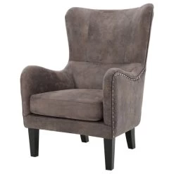 Anchor your living room with this supremely comfortable studded club chair. With a delightfully cozy yet stylish design, this elegant and eye-catching club chair gives a refined atmosphere to your decor. Crafted with painstaking details, including a beautiful nailhead trim and gentle wingback design, this is a piece offers your interior space a perfect homey touch. Finished with a mid-century modern flair, our cub chair invites everyone in the family to sit back and unwind whenever you’re in need of a little relaxation.
