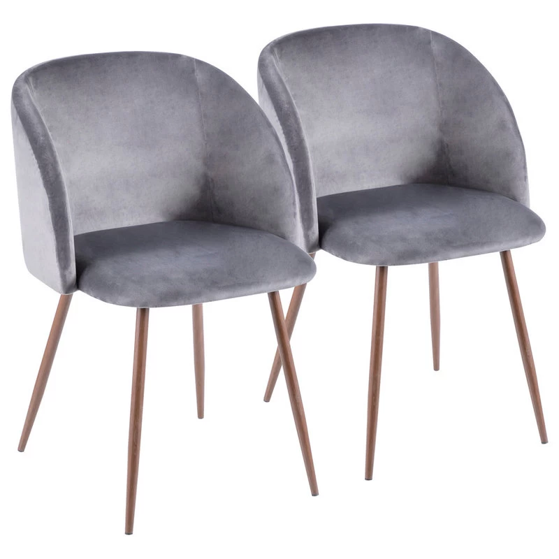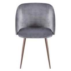 Surround your dining table with the beauty of the Fran Dining Chair. Featuring a sophisticated velvet upholstery that will tie in perfectly with your contemporary decor, this ultra comfortable padded bucket seat is complemented by tapered walnut wood legs. Available in either blue or grey, choose the color that ties in with your decor!