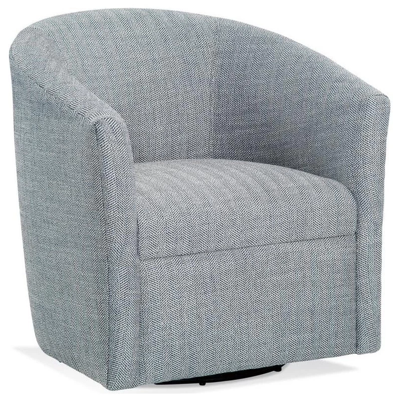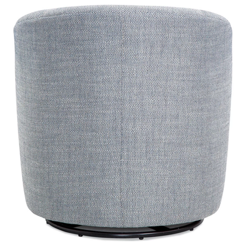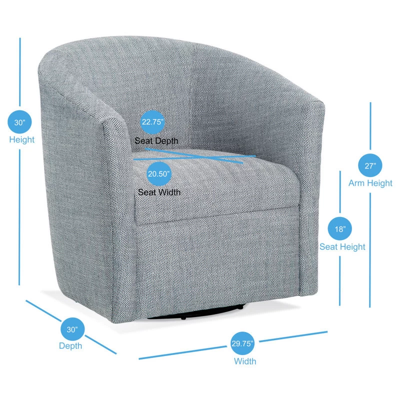 The Lynton Swivel chair combines fun with comfort and style. Perfect to round out your living room seating or for a private corner in your bedroom. The comfortable barrel back design is on a functional 360 degree swivel and is great in pairs or more! The herringbone 100% polyester fabric lends a tailored look to this casual chair and is easy to care for. Available in your choice of Sea Oat, Indigo and Henna.