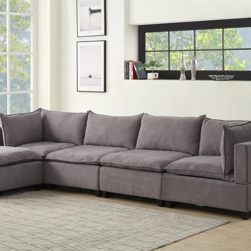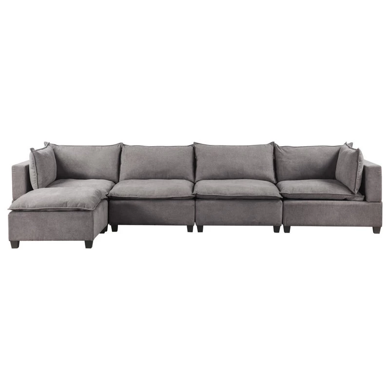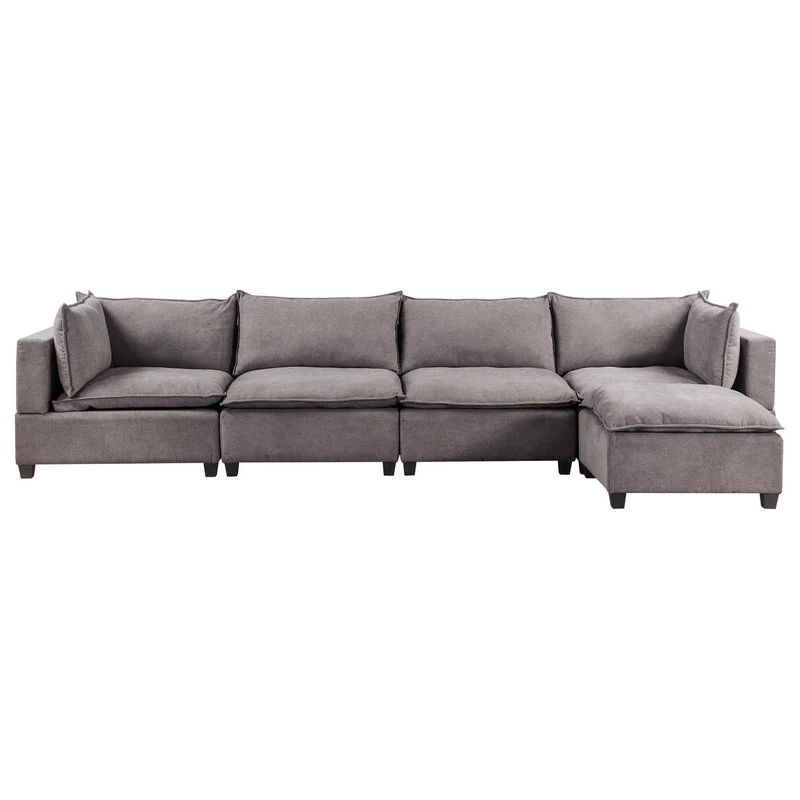 Sit back and relax in the Madison Collection! Crafted from solid wood and fine fabrics, this spacious modern contemporary style reversible modular sectional sofa with ottoman will welcome you and your guests to enjoy your activities with style and comfort. Featuring down feather filled cushions, pocket coil and foam seating, and quality woven fabric, this European Style living room set offers a timeless look and is the leader of furniture trends.