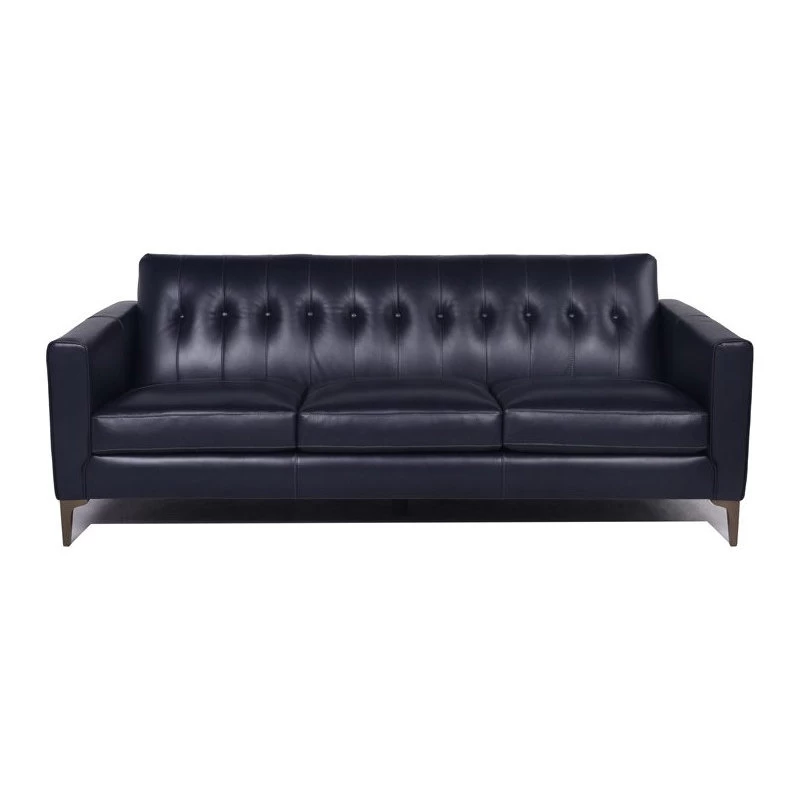 Outfit your living room in modern sophistication with this icon of mid-century modern sofa design. This showstopper sofa is covered in rich top grain leather and features a super chic tight back design with button detailing for a clean look and expertly tailored finishes. Brushed rose gold metal legs further accentuate the simple elegance of this gorgeous sofa.