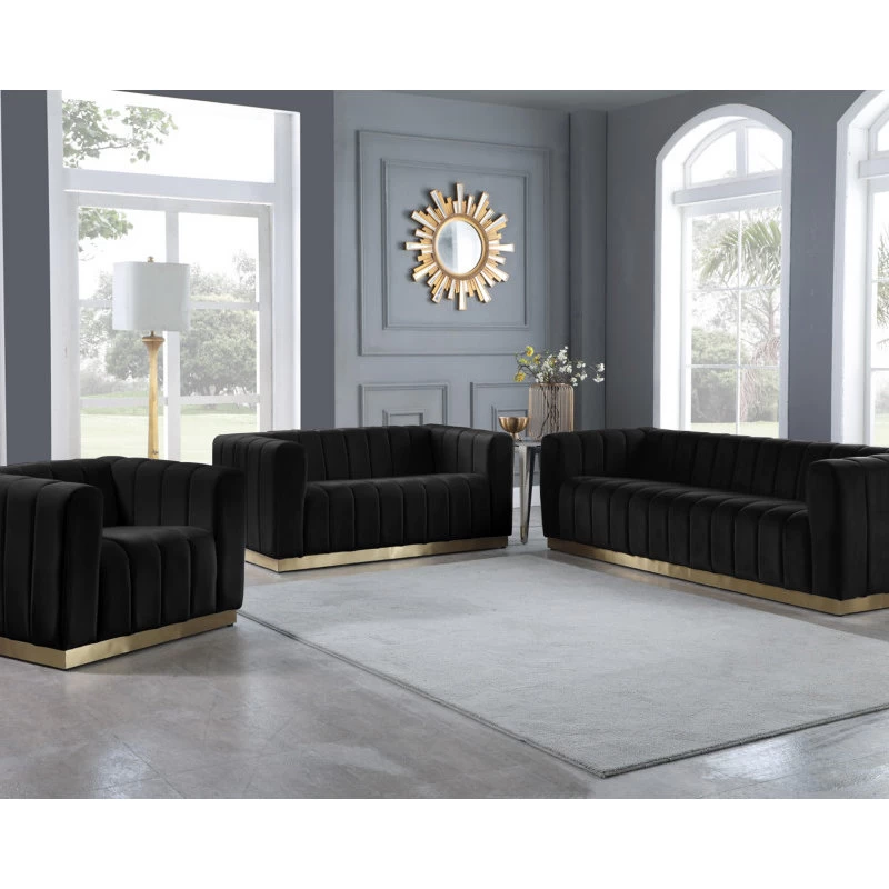 Elegant and eye-catching, the stunning Black Velvet Marlon Loveseat from Meridian Furniture is the perfect addition to any space.