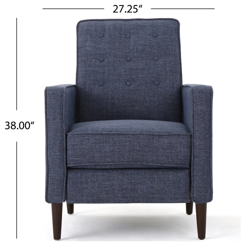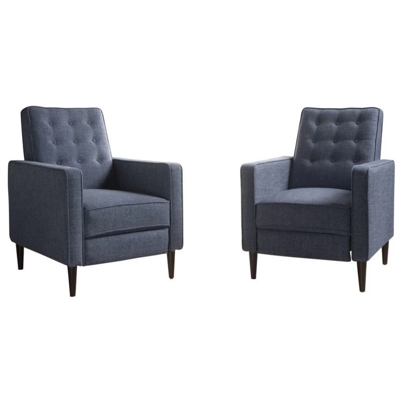 Looking for a place to prop up your feet and relax after a long day of work? Our mid-century modern recliners are a wonderful addition to any living room decor. Featuring clean lines and a smooth finish, these recliners offer you incredible comfort as well as sleek style. This is finished with lovely tapered legs for a sturdy structure and outstanding design. Complete with a beautifully button-tufted backrest and smooth upholstery for maximum comfort, these recliners will easily turn into your favorite place to unwind.