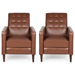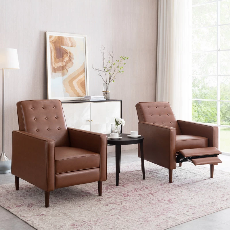 Looking for a place to prop up your feet and relax after a long day of work? Our mid-century modern recliners are a wonderful addition to any living room decor. Featuring clean lines and a smooth finish, these recliners offer you incredible comfort as well as sleek style. This is finished with lovely tapered legs for a sturdy structure and outstanding design. Complete with a beautifully button-tufted backrest and smooth upholstery for maximum comfort, these recliners will easily turn into your favorite place to unwind.