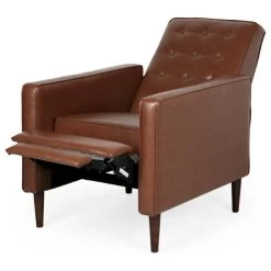 MID-CENTURY MODERN: Blending together iconic tapered legs with a smooth upholstery, our recliner offers a mid-century look to your lounge space. With its clean lines and understated look, this chair uses new materials to reimagine a traditional design.
