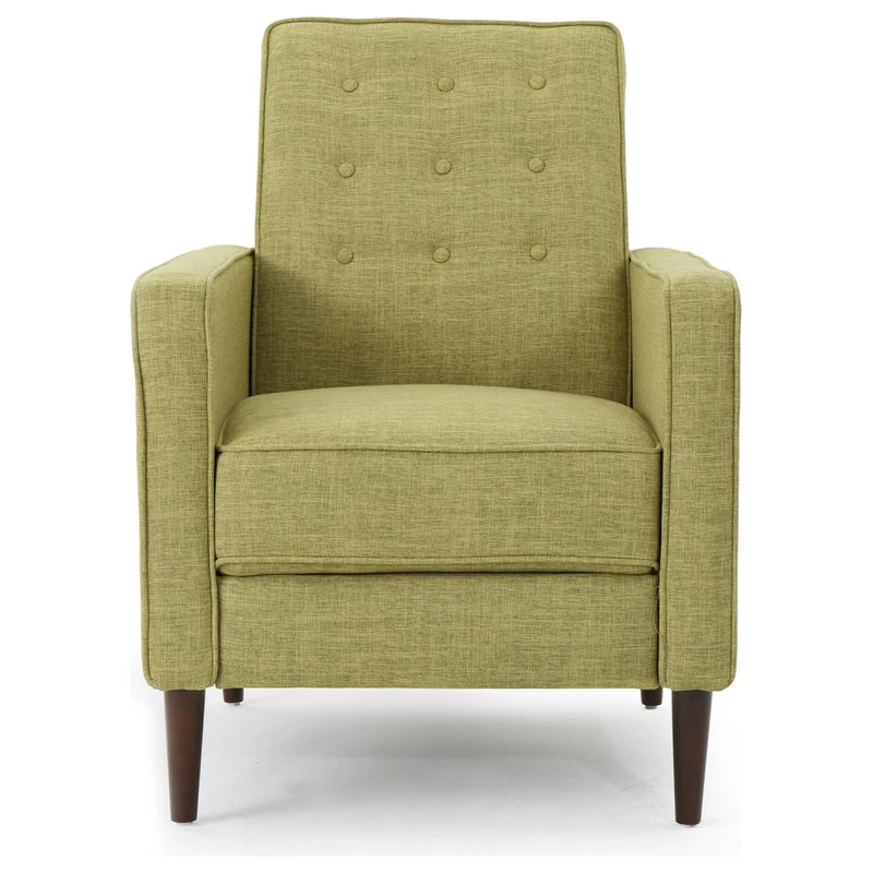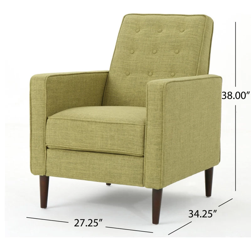 Looking for a place to prop up your feet and relax after a long day of work? Our mid-century modern recliners are a wonderful addition to any living room decor. Featuring clean lines and a smooth finish, these recliners offer you incredible comfort as well as sleek style. This is finished with lovely tapered legs for a sturdy structure and outstanding design. Complete with a beautifully button-tufted backrest and smooth upholstery for maximum comfort, these recliners will easily turn into your favorite place to unwind.