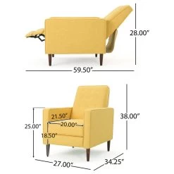 Looking for a place to prop up your feet and relax after a long day of work? Our mid-century modern recliners are a wonderful addition to any living room decor. Featuring clean lines and a smooth finish, these recliners offer you incredible comfort as well as sleek style. This is finished with lovely tapered legs for a sturdy structure and outstanding design. Complete with a beautifully button-tufted backrest and smooth upholstery for maximum comfort, these recliners will easily turn into your favorite place to unwind.