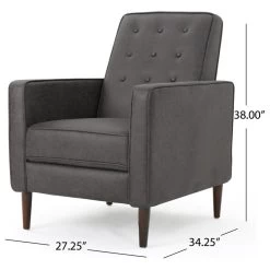 Looking for a place to prop up your feet and relax after a long day of work? Our mid-century modern recliners are a wonderful addition to any living room decor. Featuring clean lines and a smooth finish, these recliners offer you incredible comfort as well as sleek style. This is finished with lovely tapered legs for a sturdy structure and outstanding design. Complete with a beautifully button-tufted backrest and smooth upholstery for maximum comfort, these recliners will easily turn into your favorite place to unwind.