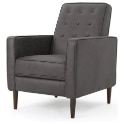 Looking for a place to prop up your feet and relax after a long day of work? Our mid-century modern recliners are a wonderful addition to any living room decor. Featuring clean lines and a smooth finish, these recliners offer you incredible comfort as well as sleek style. This is finished with lovely tapered legs for a sturdy structure and outstanding design. Complete with a beautifully button-tufted backrest and smooth upholstery for maximum comfort, these recliners will easily turn into your favorite place to unwind.