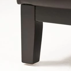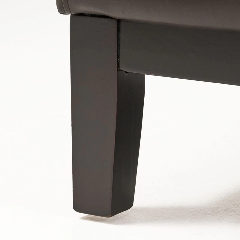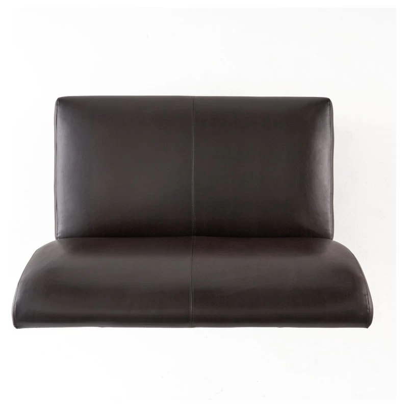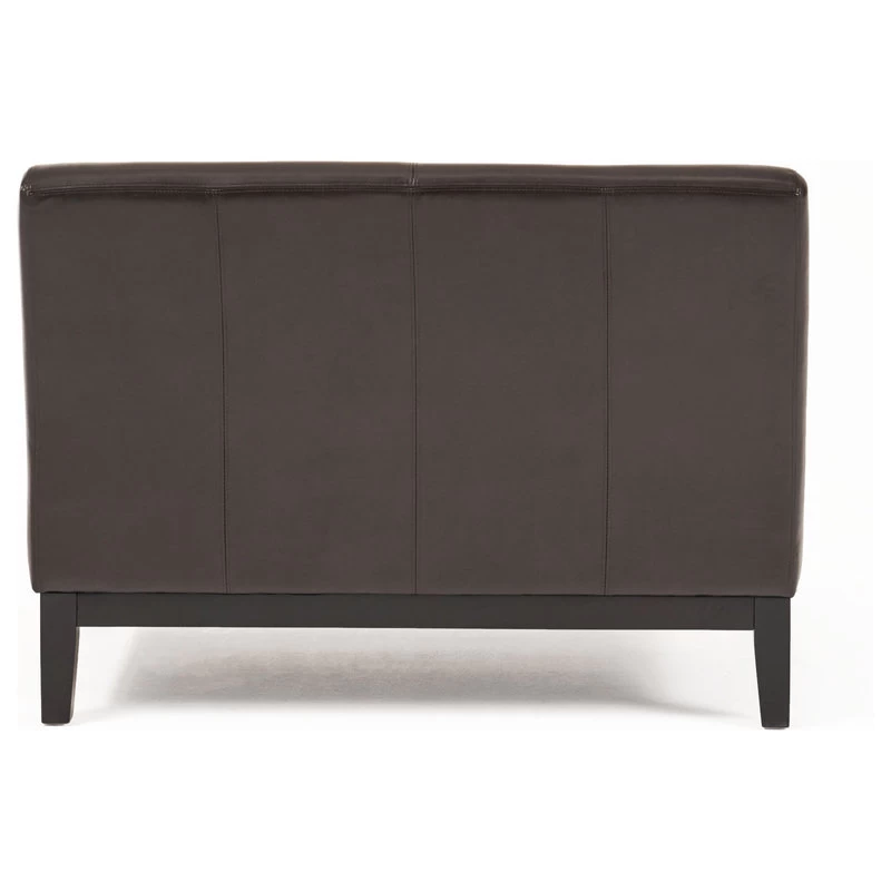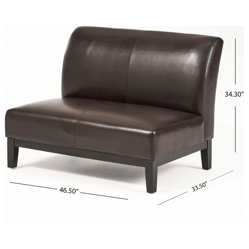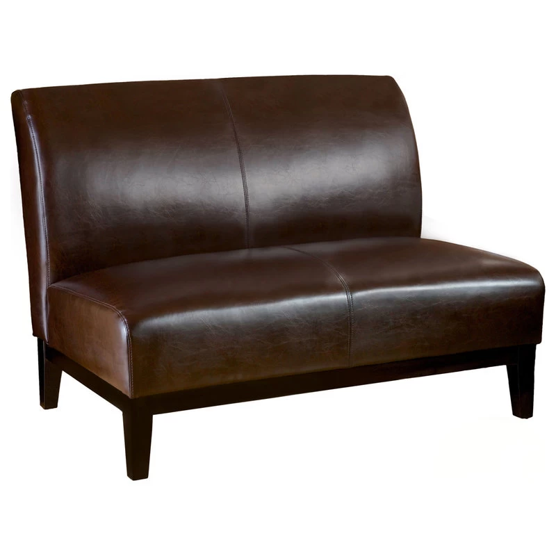 The Massimo Loveseat is upholstered in smooth bonded leather and stands on brown wooden legs. Its size, simplicity and stylish design makes this piece perfect for any small space.