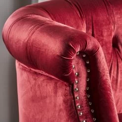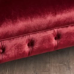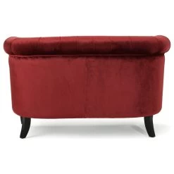 Refine your home with charming antique styling that a true connoisseur will recognize. This Chesterfield-style loveseat is the ideal addition to any living room with its classic design and traditional elements such as deep button tufting, scrolled arms, and nailhead accents. Featuring soft velvet upholstery, this loveseat stands as a streamlined statement piece that can change the whole flow of your living room, creating an open, clean space. Finished with beautifully turned legs, our loveseat provides an elegant touch to any room.