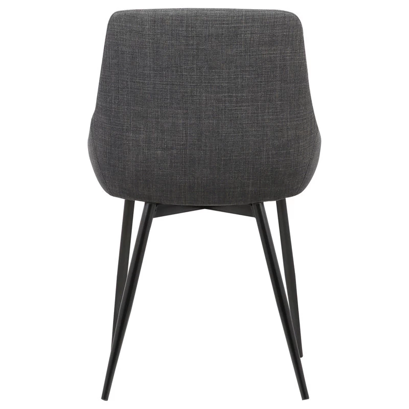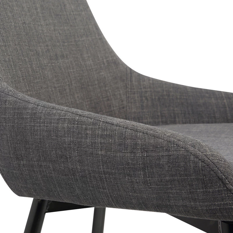 The Armen Living Mia contemporary dining chair is a practical yet stylish addition to any contemporary dining room arrangement. The seat is made of a sturdy frame covered with an exquisite fabric while the legs are made of a sturdy yet stylish black metal. The Mia chair comes in two exceptional color choices: charcoal and gray.
