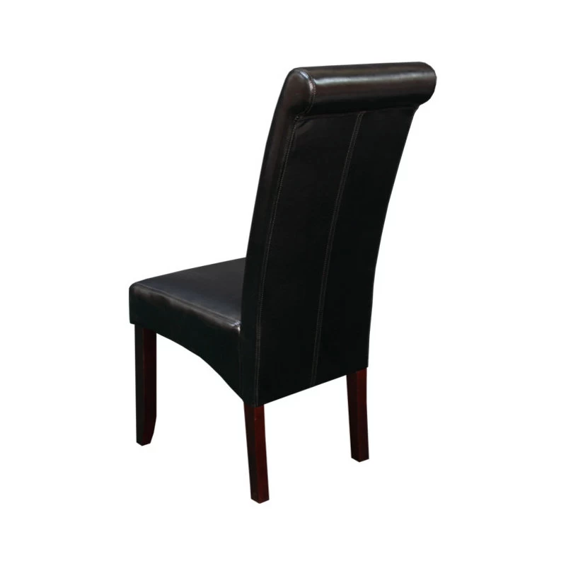 These elegant dining chairs provide your dining area with sophistication. The transitional style with the durable faux leather and dark legs provide a renewed style to your current decor.