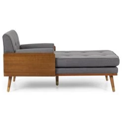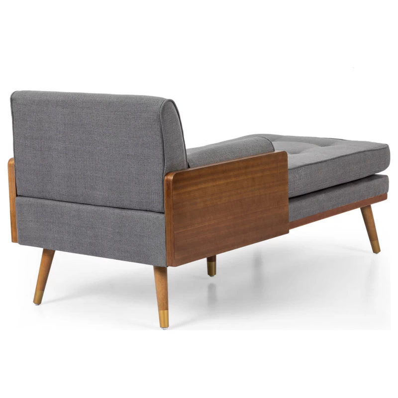 GOLD TIPPED RUBBERWOOD LEGS: These iconic splayed legs are finished with gold tips, providing the final touch to this mid-century modern chaise lounge. Made from rubberwood, our environmentally-friendly wood not only offers plenty of durability, but it also gives this piece a beautiful natural-grain look. Combined with a gorgeous finish, this wood will truly stand out in any room.