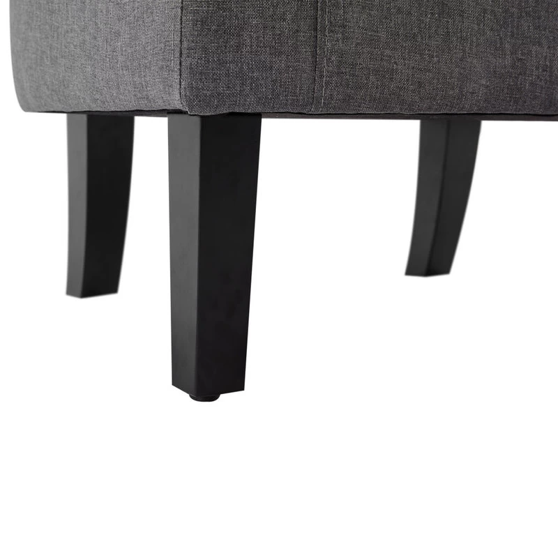 - Designed to last, with its upholstered fabric and solid wooden legs.