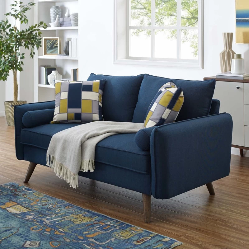 Give new vitality to your home or apartment living space with Revive. With a comfortable yet tailored profile and two bolster pillows, Revive beckons guests to sit and stay a while. Its soft fabric upholstery grants this loveseat an approachable appeal that’s echoed by its calming color, clean lines, and splayed wood legs. Arriving directly to your doorstep in a convenient shipping box, Revive easily unpacks to quickly become the most well-loved lounge spot in your home.