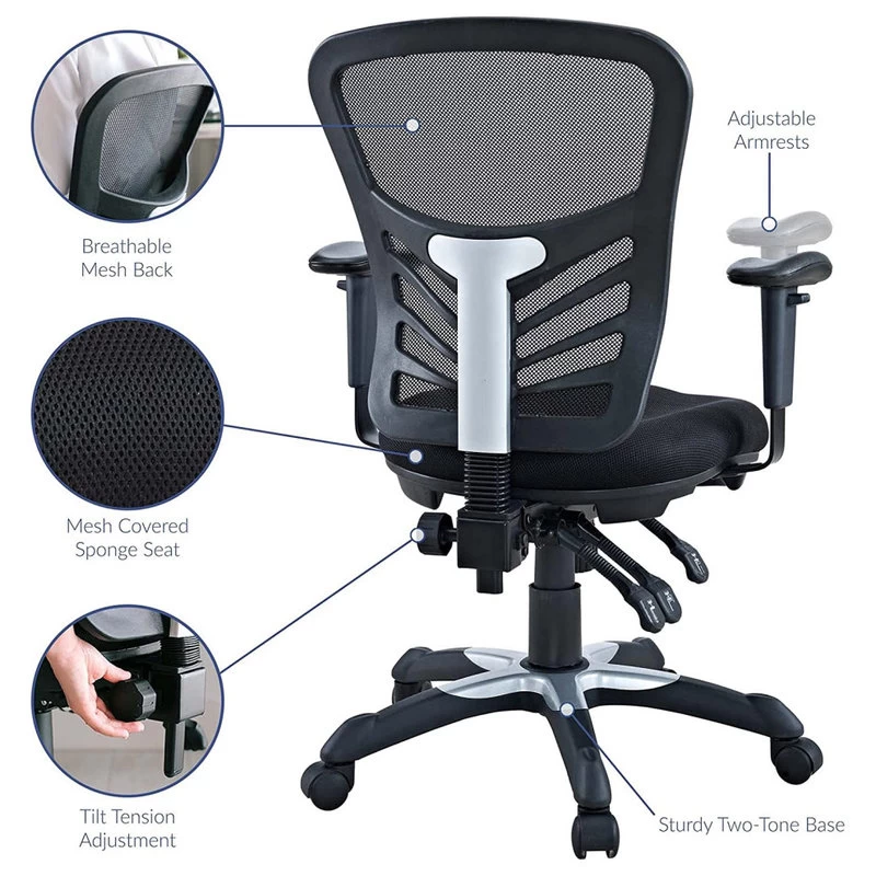Modern Ergonomic Office Chair, Mesh Seat & Back With Adjustable Armrests, Black