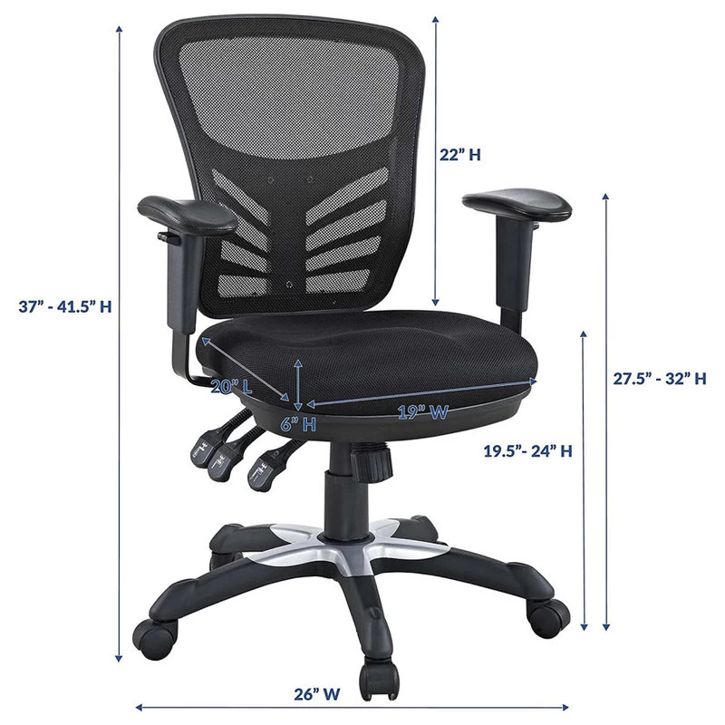 - OFFICE CHAIR MEASUREMENTS – Product Dimensions: 26.5″L x 26″W x 34 – 39″H; Armrest Height: 27.5”H – 32″H. Backrest Height- 22 H inch. Cushion Thickness-6 inch. Floor to top of Bacrest- 37 – 41.5 H inches, Seat To Top of Backrest- 22 inch