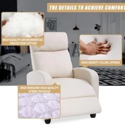 The Recliner chair is upholstered with durable, water-resistant PU leather or comfortable canvas, and the legs and frame are engineered from solid hardwood to provide added stability and durability.