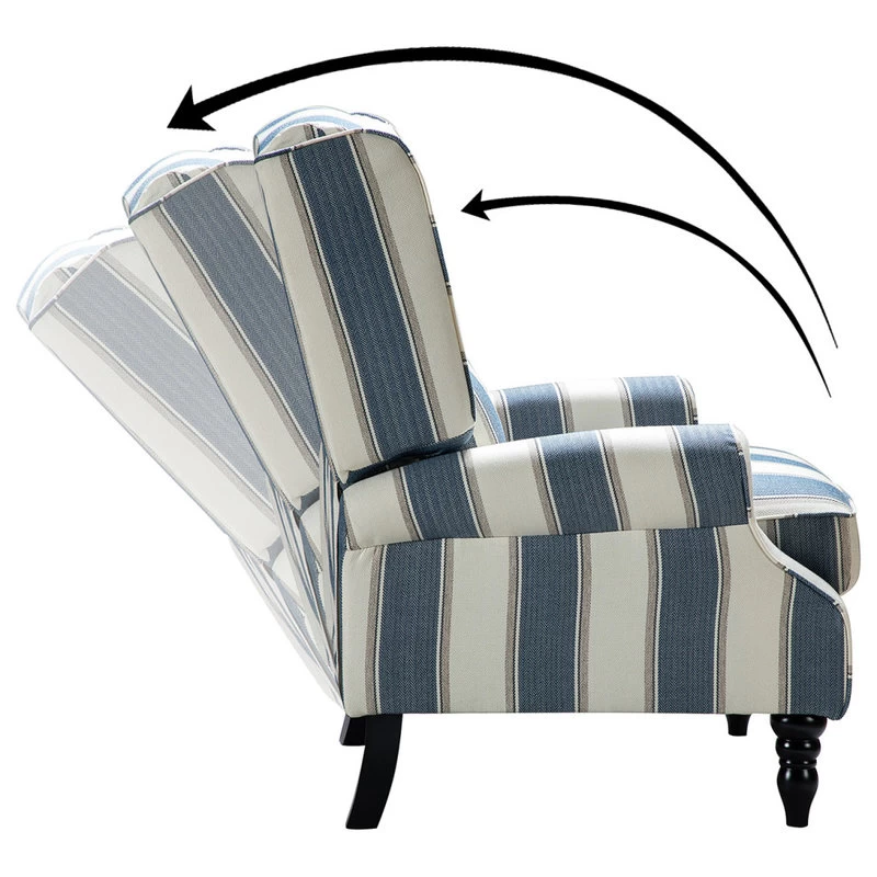 When it comes to elevating your living room look or accenting the master suite, this modern wingback recliner is the perfect spot to unwind. This chair with two cushions padded backrest and a foam-filled frame exudes ease and comfort when both upright and in the reclining position, while the built-in pocket spring and sinuous spring provide excellent support capacity. Crafted from solid and manufactured wood while offering several different fabric choices, this textured manual-adjusted recliner shows a modern appearance for simple yet fashionable charm in any living room. With optional patterns and creative colors that meet your demands, its retro-carved rubber legs bring you endless reverie. Simply recline the back with the hidden footrest, it helps to relax your joints after a long day of work, perfect for living room, media, and master bedrooms.