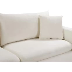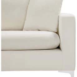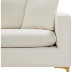 “Curl up with a good book from the welcoming confines of this Naomi Cream Velvet Sofa. The color of this sofa adds a bold touch to your decor and shakes up otherwise neutral color schemes. Plush velvet material feels cozy and comfortable against your skin, while deep seat cushions provide lots of room for you to stretch your legs. This sofa comes with both gold and chrome legs, so you can customize its look to meet your decor plans. Pillows are included for added homey warmth and comfort.