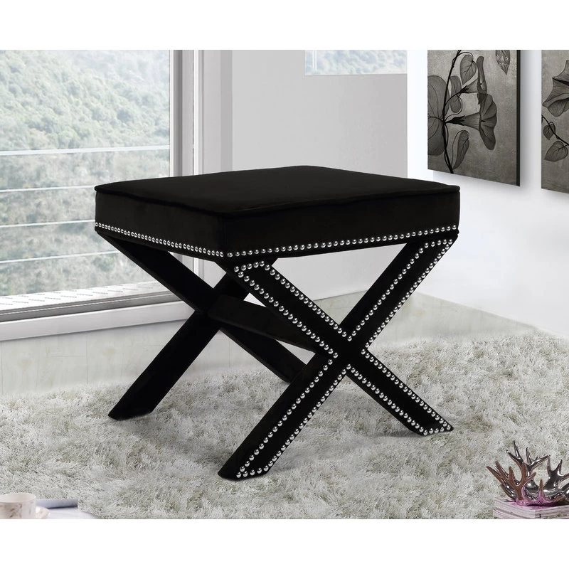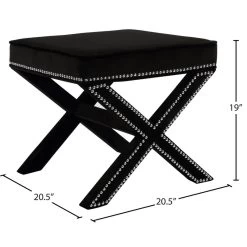 Provide extra seating with the stylish Nixon Velvet Bench to your living room, dining room or end of your bed. The bench’s black velvet upholstery and chrome nail head trim encourage comfort within simplicity to sit and stay awhile. Adding to its contemporary modern style, its X-shaped legs are compact and durable, making this piece a perfect finishing touch to any room. Its overall design emphasizes sharp lines and a bold finish, making it a complementary addition to your modern and contemporary home.