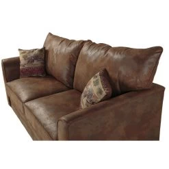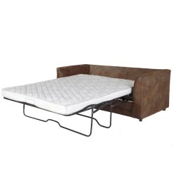 The Palomino sleeper sofa features a beautiful, rustic leather-look microfiber fabric. Solid wood frames and legs create a product that will last for years. Fiber wrapped, high density foam cushions offer a soft but supportive seating experience. The sleeper sofa includes an inner spring, quilted top queen mattress and features a Leggett & Platt mechanism.