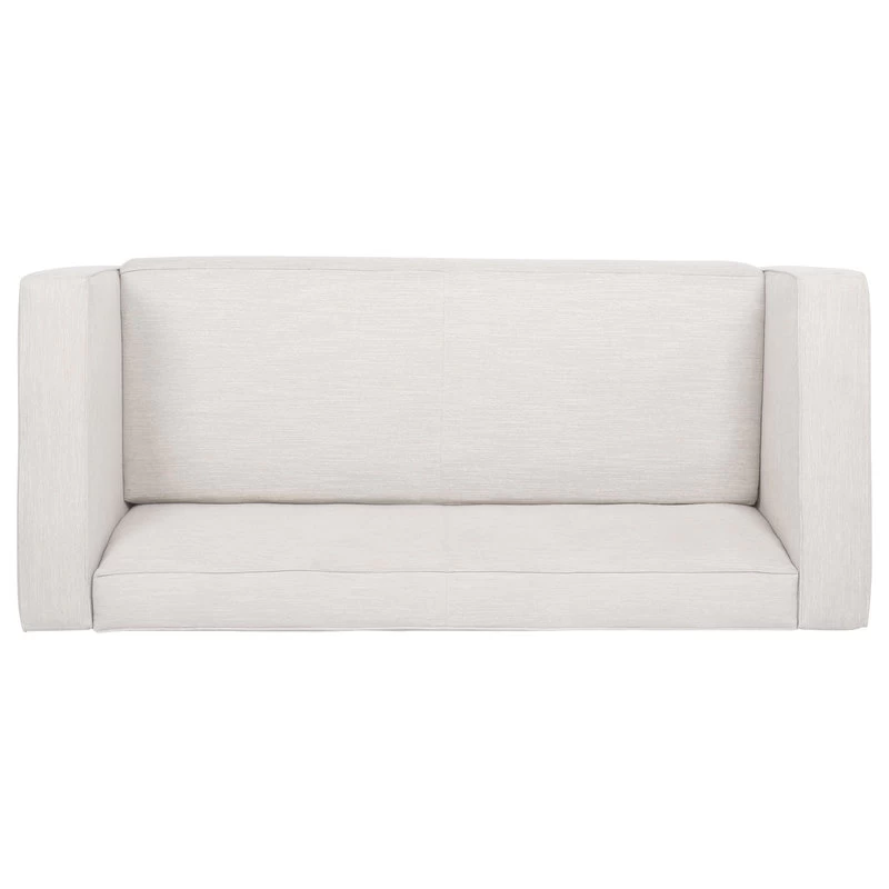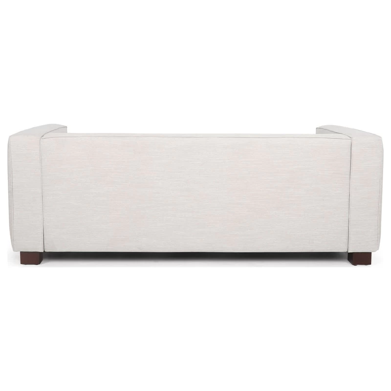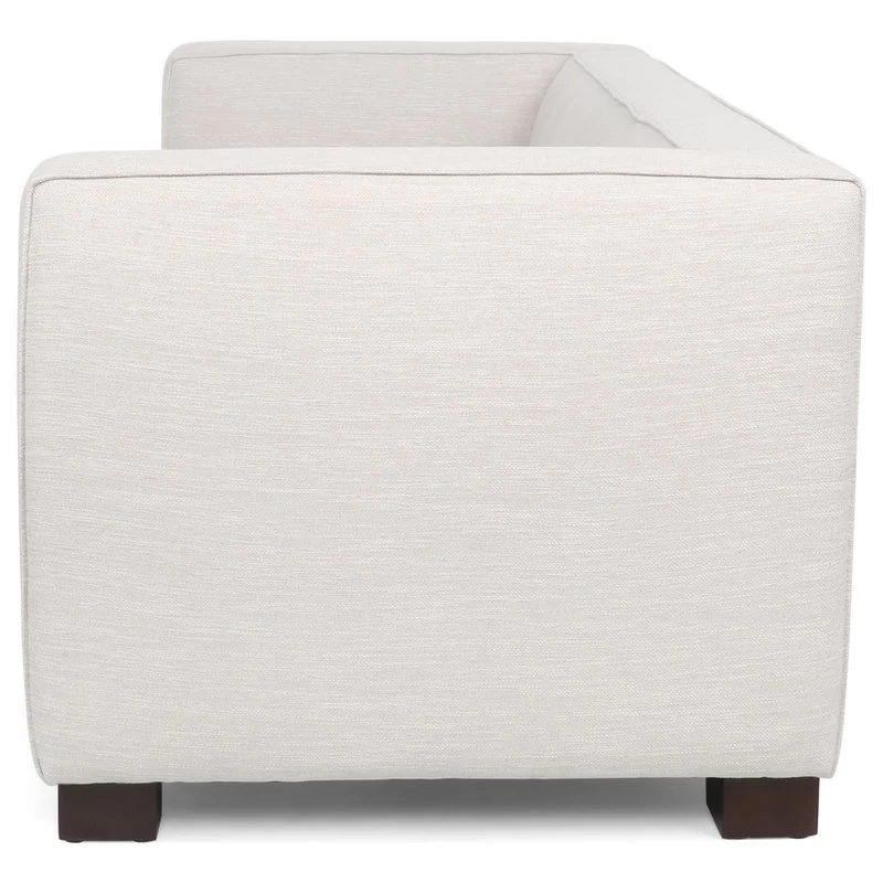 Bring a sophisticated flair to your interior space with comfortable seating that also meets all your lounging needs. This classy loveseat is the ideal addition to any home with its understated contemporary design and clean tuxedo armrests. Featuring impeccable upholstery and sturdy block legs, this piece stands as a streamlined statement that can change the whole flow of your living room, creating an open, clean space. Finished with stunning tonal piping, our loveseat provides a chic touch to any room.
