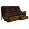 The futon is a classic hardwood frame with tray style arms. This unique and versatile full size futon sofa easily converts to a Bed. This multifunctional piece of furniture can find a home in just about any type of room.