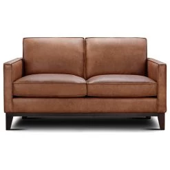 Luxury has a name, and that name is leather. Nothing could be more inviting than the warm, rich tones of 100% top grain leather upholstery on a simple, sleek design. More than just a pretty face, the Pimlico’s higher than average foam density (2.1 lbs per sq ft) means a longer lasting, more comfortable loveseat. The hardwood frame has fully padded and reinforced outside arms and back, and the solid wooden base in a dark stain provides a sophisticated contrast to the seat’s body.