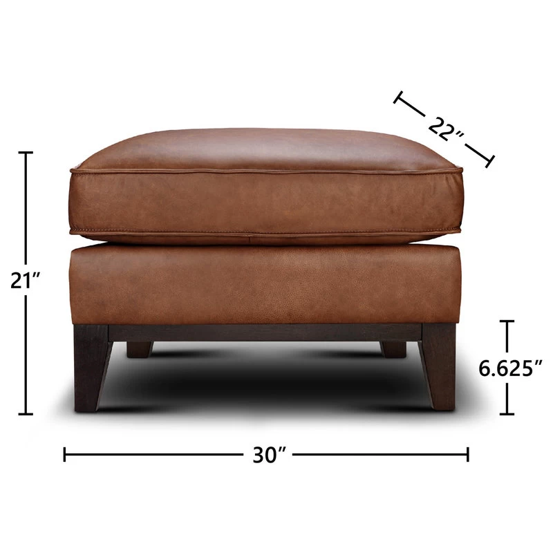 Luxury has a name, and that name is leather. Nothing could be more inviting than the warm, rich tones of 100% top grain leather upholstery on a simple, sleek design. More than just a pretty face, the Pimlico’s higher than average foam density (2.1 lbs per sq ft) means a longer lasting, more comfortable ottoman. The hardwood frame is corner blocked for stability, and the solid wooden base in a dark stain provides a sophisticated contrast to the seat’s body.
