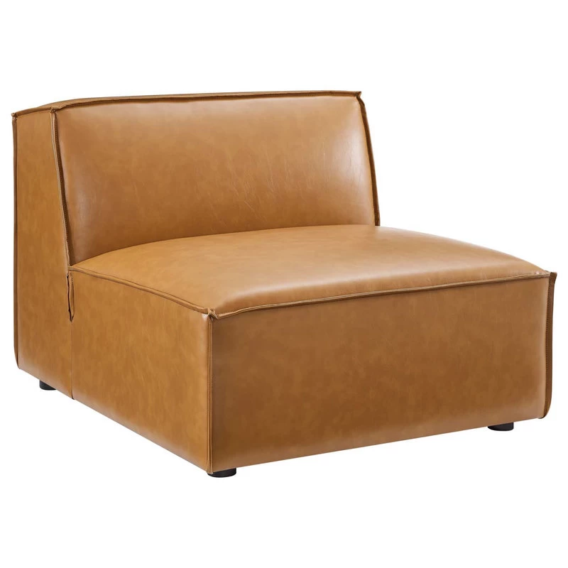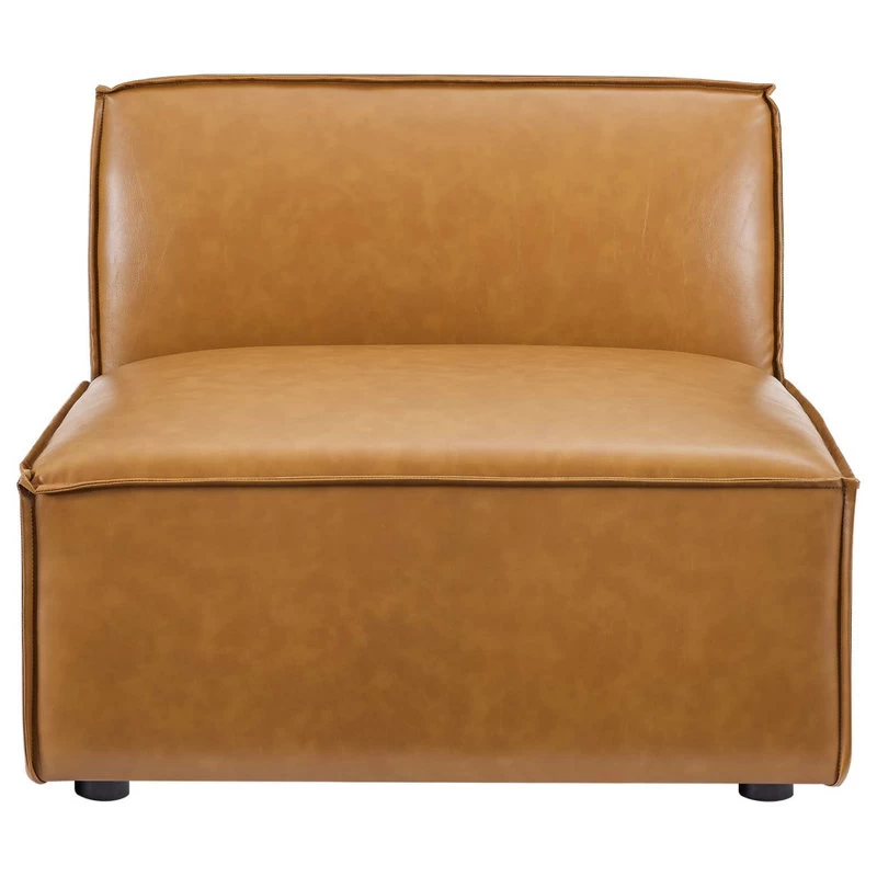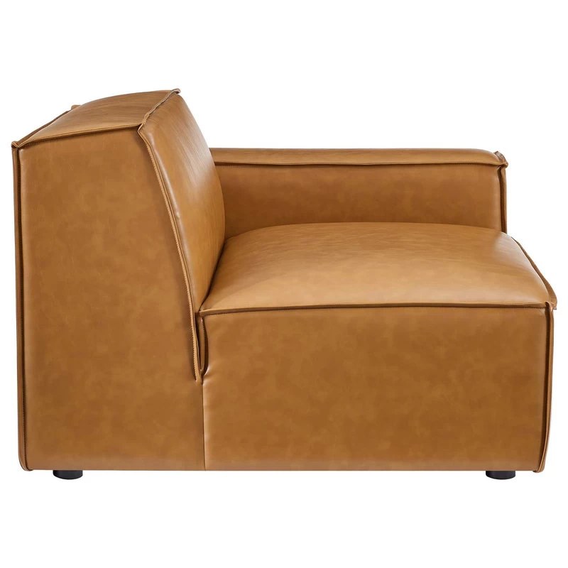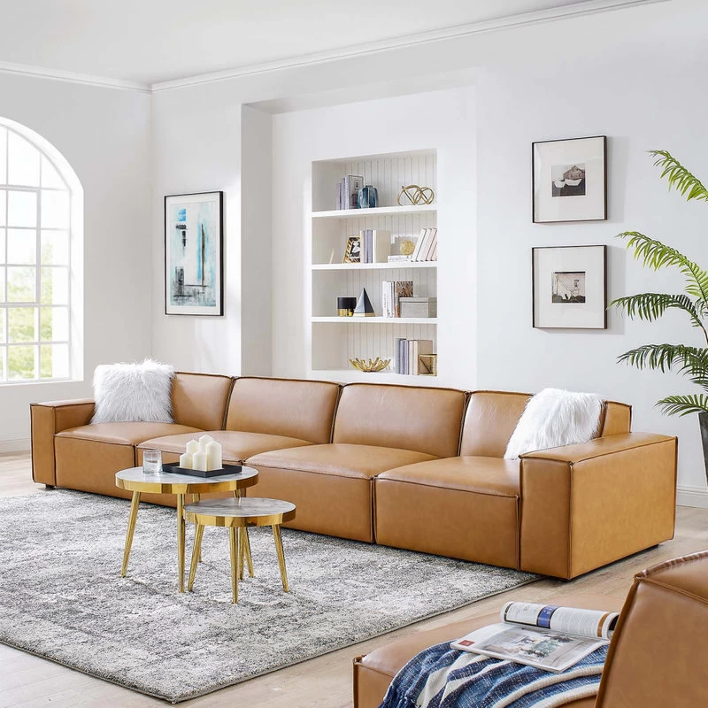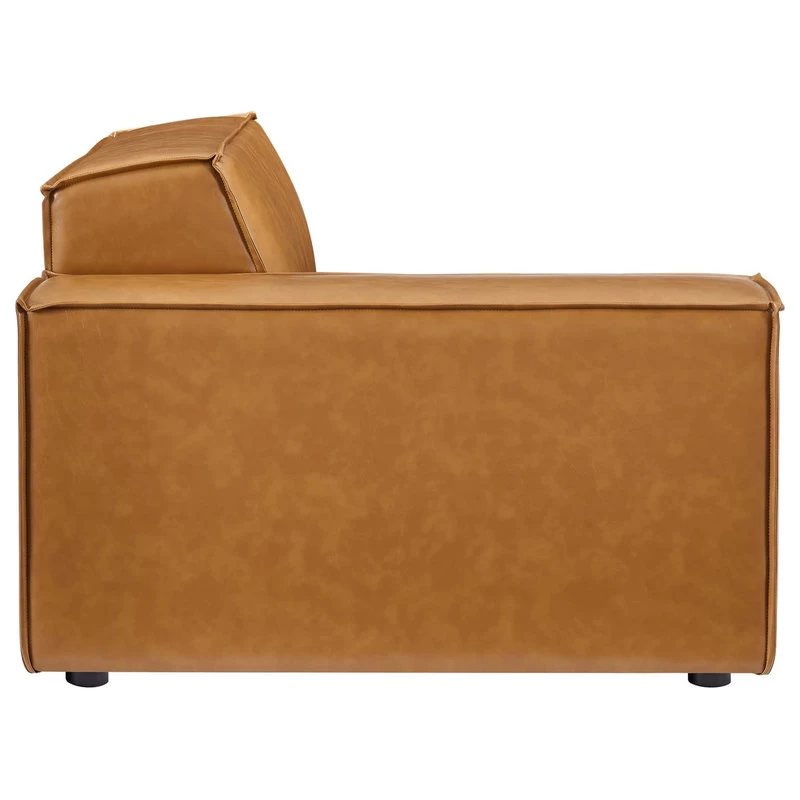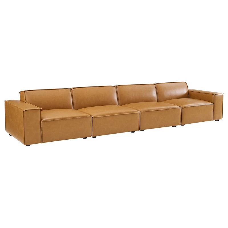 Create your custom living room and lounge area with the Restore Vegan Leather Sofa. This four-piece sofa appeals to minimalist elegance with a crisp design and broad lines accented with French piping details and vegan leather upholstery. Dense foam padding and a pocket coil spring system in the cushions offer a luxe seating experience for your living room and lounge. The Restore Living Room Three-Seater Sofa is solidly constructed from plywood and wood with non-marking foot caps to protect flooring and connectors between modular pieces. Each Chair Weight Capacity: 440 lbs.