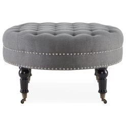 Add a hint of traditional style to your home with this elegant round ottoman from Belleze. Crafted from sturdy hardwood with linen upholstery, this white ottoman features a tufted seat design for an extra touch of luxury. Use this ottoman as a foot rest, an extra seat, a surface to place items such as magazines and serving trays or an accent piece to complement your decor. At 33 inches wide, this ottoman is large enough to offer extra seating for guests as well.