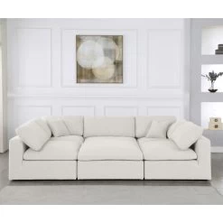 There’s lots to love about the Serene linen textured deluxe cloud-like comfort modular collection, and this piece is not an exception. The soft cream linen textured fabric is cozy and sleek to the touch while the overstuffed down/feather cushions provide gentle support so you can relax and unwind like a VIP. Customize your seating with this modular set by adding the pieces you like most. Latches under each piece make it easy to snap them into position for a look that’s modern yet welcoming.