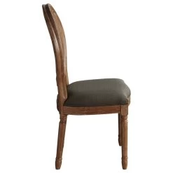 Embody French styled sophistication in your home with the Stella cane oval back chair. Beautifully fashioned, the natural authentic cane back and rustic finish enhance the look of any room. Graceful features like the scalloped front edge,fluted turned legs, and trim piping detail add classic appeal. Enjoy long dinner conversations in comfort on the liberally padded seat with durable sinuous spring support, wrapped in high performance, easy care fabric. This elegant chair is a perfect addition to your dining room, as an accent chair, or accompanying a writing desk.