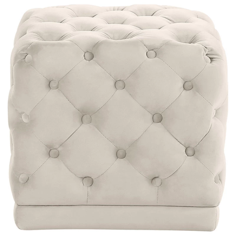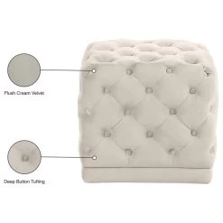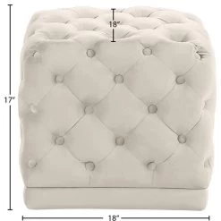 Unwind in luxury with your feet propped atop this Stella Cream Velvet Ottoman/Stool. Luxe velvet upholstery covers every square inch of this stool’s top and sides, giving it a glamorously contemporary look. The soft color blends easily with any décor theme, and the deep button tufting in a diamond-like grid pattern adds a lavish feel while helping the stool keep its loft. Position it near your favorite easy chair to create a cozy spot to relax at day’s end.