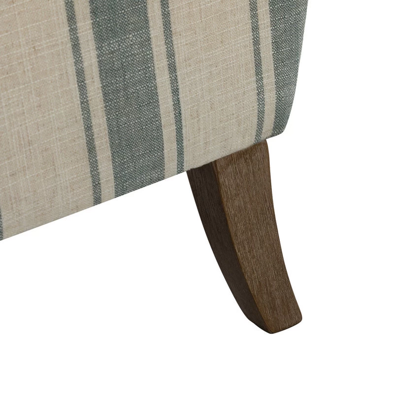 Looking to add an accent chair to your living room or bedroom This one is in keeping with your glam sensibilities, adding an eye-catching touch to your space. This is the classic and contemporary style accent chair with a slightly slanted backrest, integrated arms, and retro feet. Made with premium 100% polyester skin-friendly fabric, and features an on-trend stripe pattern that’s bound to blend in with your color scheme. High-density foam filling with a solid and manufactured wood frame provides comfort and support. The retro turning legs and tapered block legs bring antique design and add to the timeless fashion of this piece. It’s the perfect pick for living room, office room and bedroom.