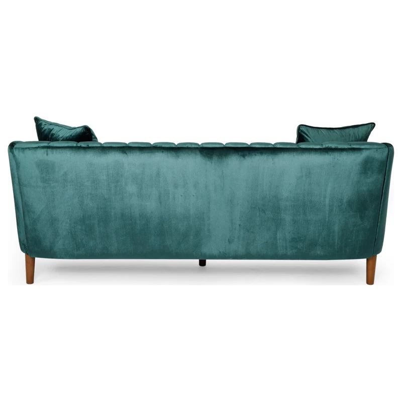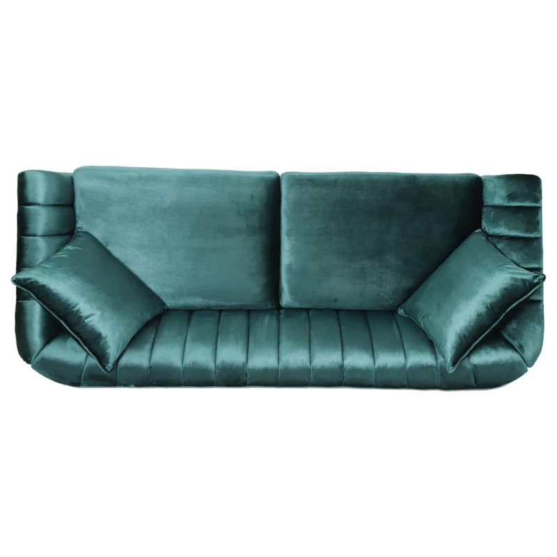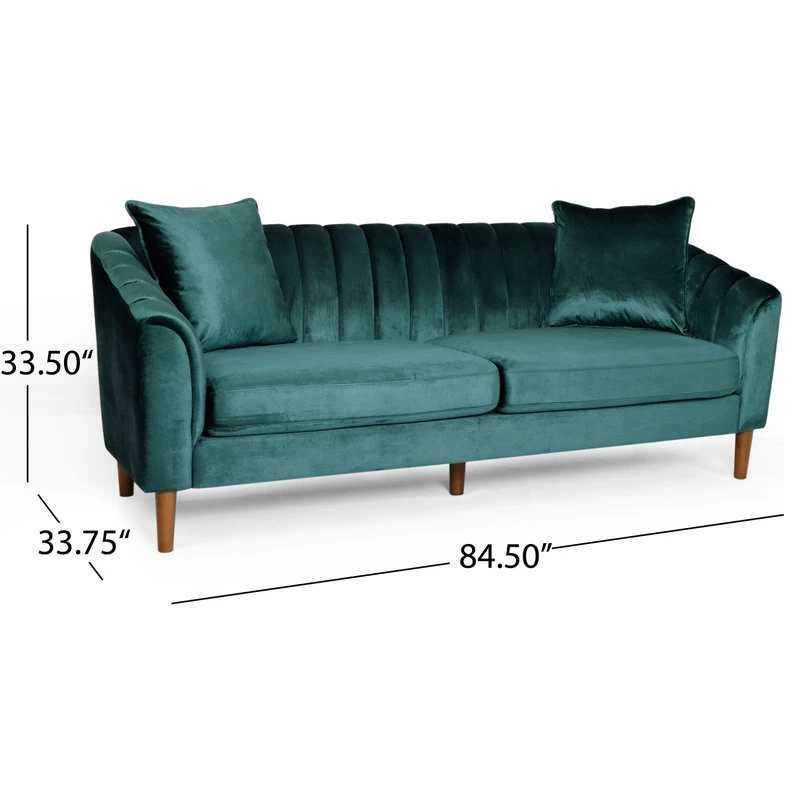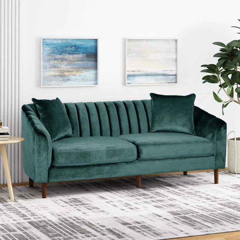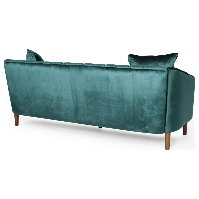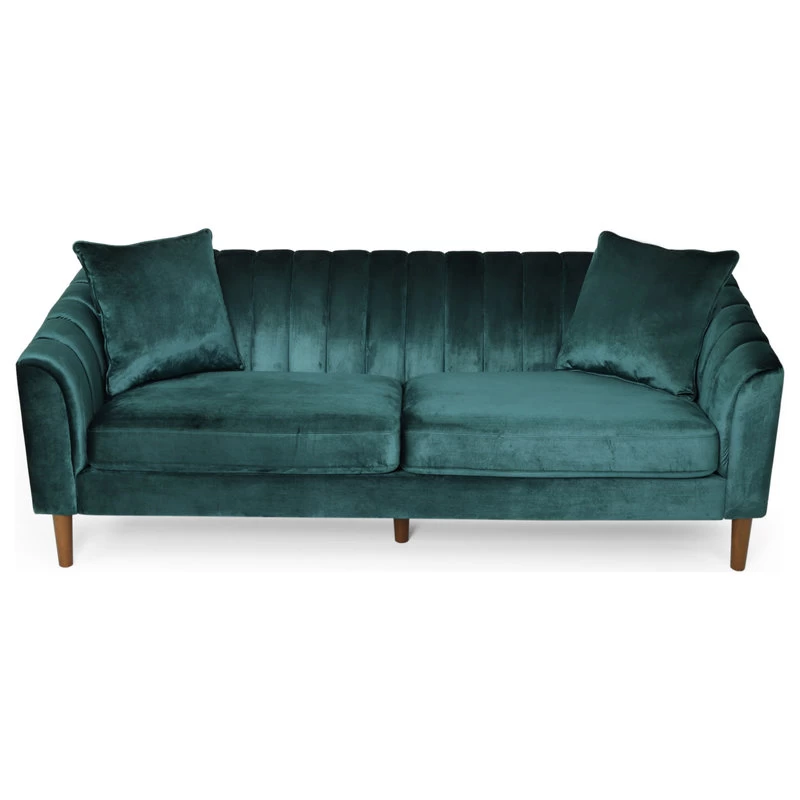 Offer your home a centerpiece of exceptional design and texture to create an atmosphere of refinement throughout your interior decor. Our three-seater sofa brings your living room a stunning look with its deep channel stitching, velvet upholstery, and sloped arms. Finished with a low profile design, this sofa stands as a streamlined statement piece that can change the whole flow of your interior decor, creating an open, clean space. From its cozy design to its lovely tapered legs, our sofa will bring excellent comfort and style to any room.