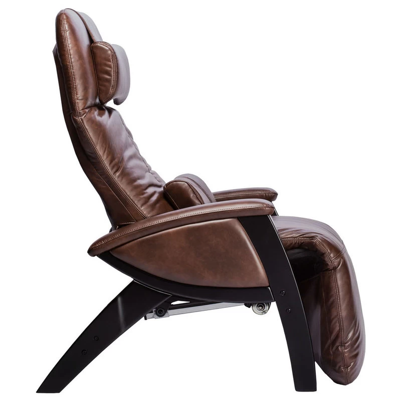 Upholstered in synthetic leather, the Cozzia features a solid birch wood base, power recline with dual articulators, vibra massage, lumbar heat, an independently adjustable headrest, independently adjustable footrest, a footrest extension for additional support, footrest extension and a removable sensi-temp foam lumbar pillow. Available in four colors: midnight black, chestnut brown, cognac and snowfall – all with a black wood finish.