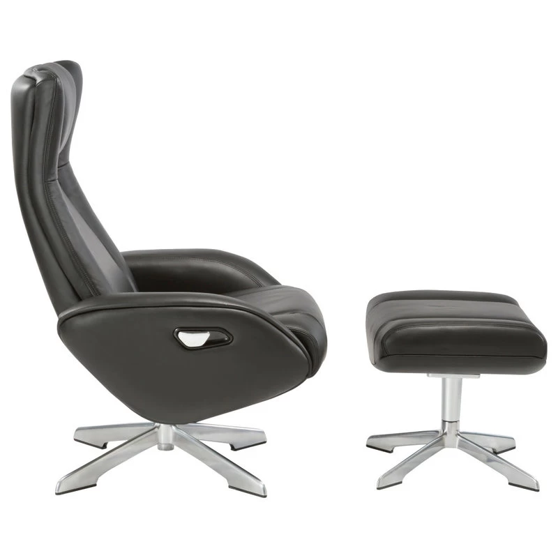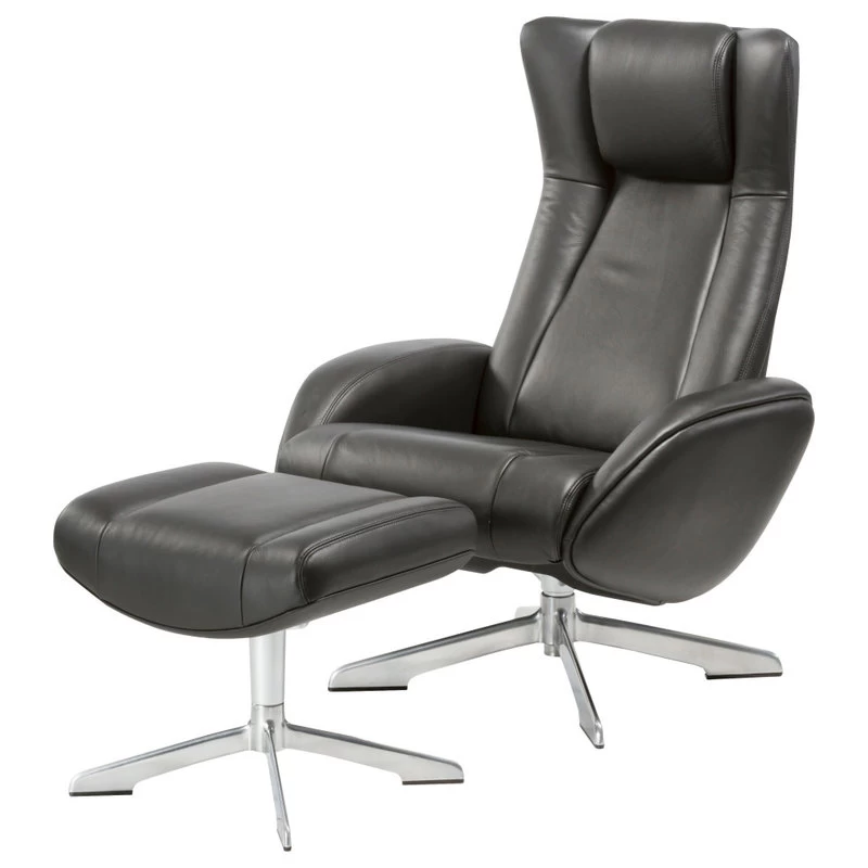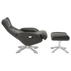 This recliner and ottoman set is so comfortable, you’ll swear it was made just for you. The top grain leather seat is buttery soft, and the plush foam padding lets you feel weightless. A smooth pneumatic recline mechanism lets you lock the chair at your perfect angle, and an adjustable headrest rounds out the ergonomic design. The sleek lines of the modern design make this chair fit into the most modern of homes, or it can help to update a more transitional look-the Tahiti is a sleek alternative to any big, overstuffed recliner.