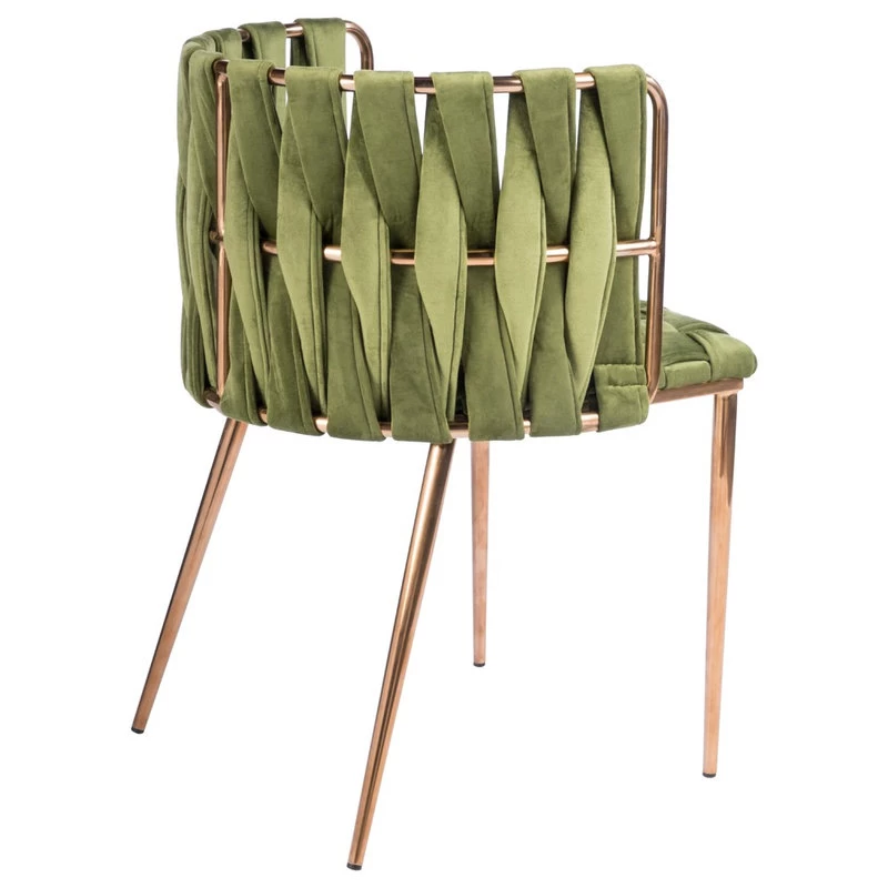 Looking for something truly new and “wow”-worthy? The Eterno dining chair is at your service. Its elegant, gold-finished frame peeks in and out of its woven, thick-cut velvet upholstery. This work of art is stylish, elevated, and above all comfortable thanks to its curved back and cushioned seat. To make a statement your guests won’t soon forget, make way for the Eterno.