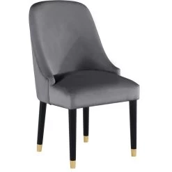 Turn back the kitchen clock with the Maisie. This mid-century dining chair is what happens when retro flair gets an updated dose of luxury. Elegant velvet wraps around its curved back, low-profile armrests, and well-cushioned seat while its sleek legs are punctuated with gold metal tips. A showstopper in any dining room, it has just enough flash to stand out with more than enough comfort to settle in.