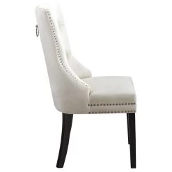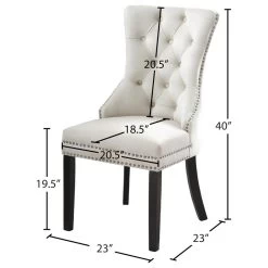 This enchanting dining chair envelopes you with its soft velvet upholstery. Elevated with a deep, button-tufted high back and inviting plush cushion, it’s sure to be a commanding presence in any room. Chrome nailheads accentuate the outer curves, while the easily-attached, espresso-colored wood legs provide plenty of support. Whether you’re sitting down to a quick meal or chatting it up with guests late into the evening, the Monarch is made for it all.