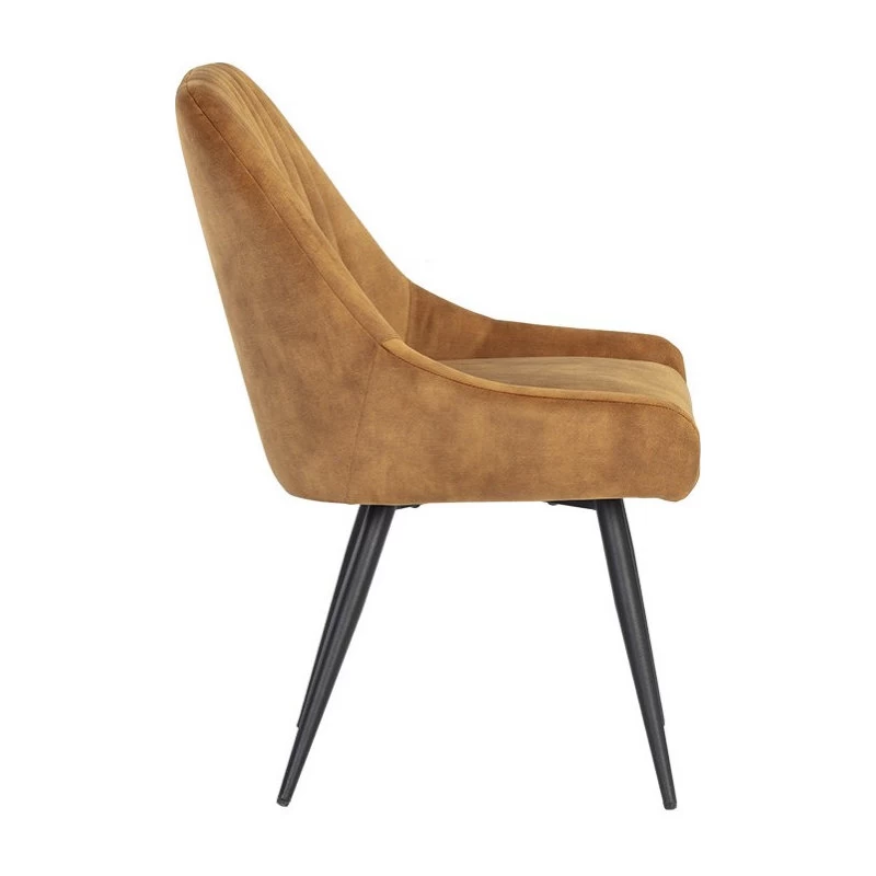 Add a touch of gold glamour to your space with the Remi Dining Chair. This midcentury charmer emits a cool, loungey aura. The channel tufted back and angled black iron legs bring intrigue to this artfully inviting design. Kick back, pour yourself a strong one, and revel in the good times in style.
