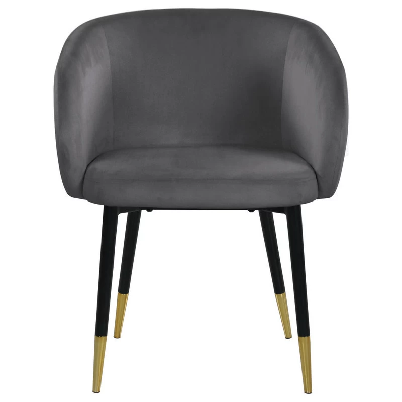 Bring home your new throne with the stylish Soho. Covered in lush velvet, this contemporary dining chair is as comfortable as it is durable. Elegant metal legs in black stretch down to gold-finished tips that accentuate any flooring. Guests will fall in love with its curved back and sides that envelope you in almost all-around cushioning. Sink into the Soho and you’ll find that no matter where you place it, luxury will be at the forefront.