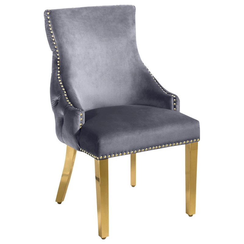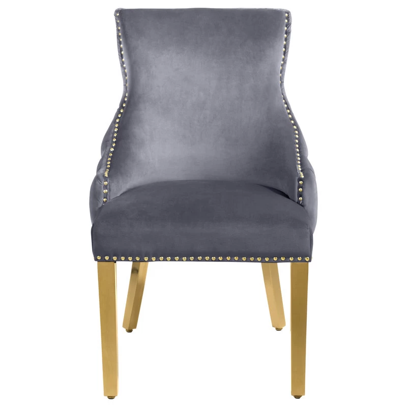 Introducing: its majesty, the Sovereign dining chair. It’s no question that when it comes to dining royalty, this chair is the last word in luxury. With a cushioned seat and gold nailheads that trace the perimeter like a dazzling crown, it’s no wonder it reins supreme. Revel in the tufted back and enjoy not one, but two, plush and polished pieces to consider your in-home thrones.