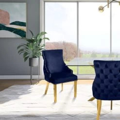 Introducing: its majesty, the Sovereign dining chair. It’s no question that when it comes to dining royalty, this chair is the last word in luxury. With a cushioned seat and gold nailheads that trace the perimeter like a dazzling crown, it’s no wonder it reins supreme. Revel in the tufted back and enjoy not one, but two, plush and polished pieces to consider your in-home thrones.